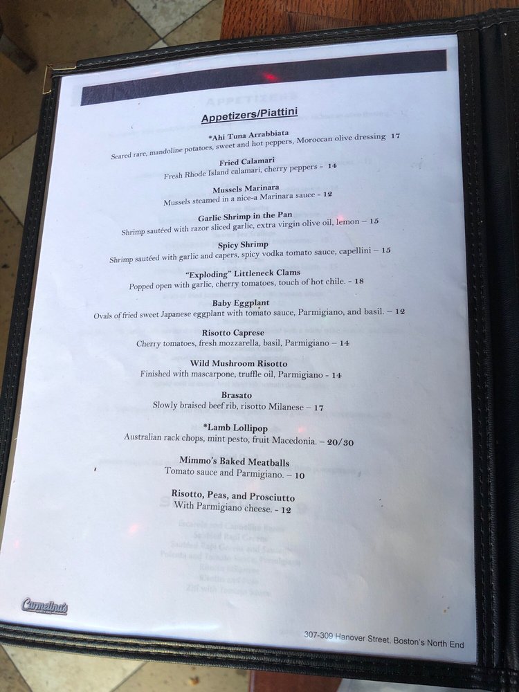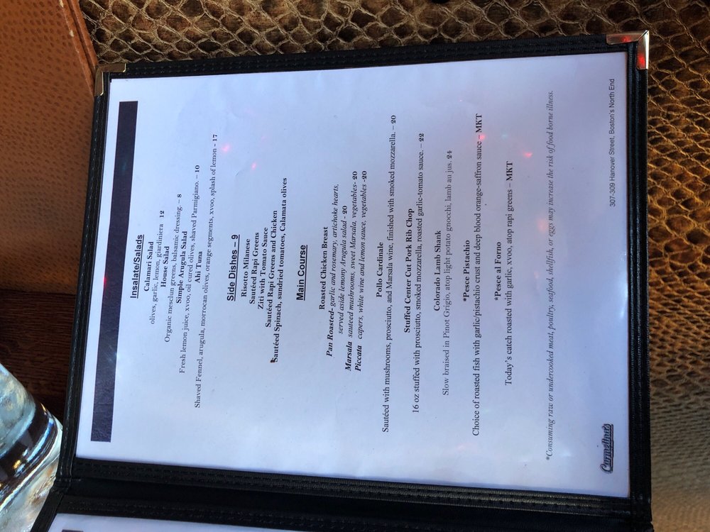 Carmelina's is an Italian restaurant located at 307 Hanover St in Boston, MA. The restaurant offers a variety of vegan and vegetarian options, making it a great choice for those with dietary restrictions. With amenities like accessible parking, waiter service, outdoor seating, and even drive-thru service, Carmelina's aims to provide a comfortable and convenient dining experience. The menu features delicious Italian dishes, with options for both adults and children. The restaurant also offers beer and wine options, making it a perfect spot for a casual dinner or happy hour. Whether you're looking for a quick bite or a leisurely meal with friends, Carmelina's has something for everyone.