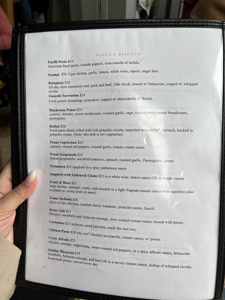 Meatballs, sulmona sausage, and beef rib in a savory tomato sauce, dollop of whipped ricotta. Served every day.